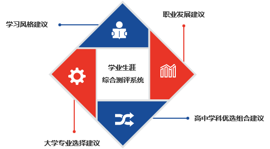 学业生涯综合测评系统由北京师范大学学业规划研究中心研发。该测评系统包含:多项学业认知能力分析、职业倾向分析,并基于数据整合分析得出适合学生的学习风格建议、大学专业选择建议、 职业发展建议、以及高中学科优选组合建议。